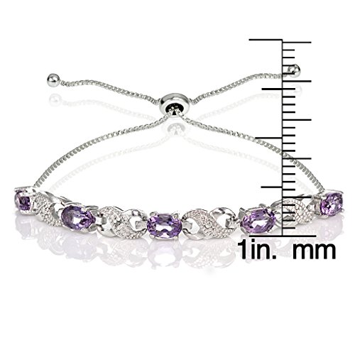 -. Feature : Sterling Silver adjustable bolo bolo bracelet features an elaborate design that focuses on the meaningful infinity symbol which is linked with genuine or created gemstones. / Bracelet Adjusts from 7 Inches up to 10 Inches with an adjustable closure / This striking jewelry piece is a dazzling winner, make it memorable! / This Jewelry Piece is an Awesome Gift for Birthdays, Anniversaries, Wedding Party, Holiday, Graduation etc. Ice Gems packs each Item in a nice jewelry pouch which creates a lovely packaged gift! / Disclaimer: Diamond(s) may have less than 17 facets.