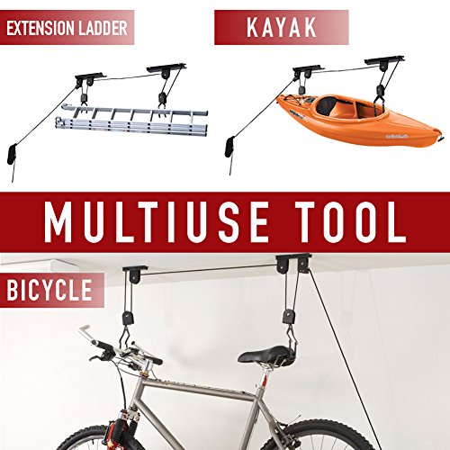 - ATTENTION TO ALL BIKERS OUT THERE - Hanging Bike Rack (TM) is the ultimate bike ceiling hanger out there for you! Storing your kid’s cycle or your mountain bike without taking too much space, its mounted system also allows heavy duty pulling not just from bicycles, but kayaks, extension ladders, and other gears as well. Tidy and organise your home trailer and storage room in an instant with this multiuse tool!