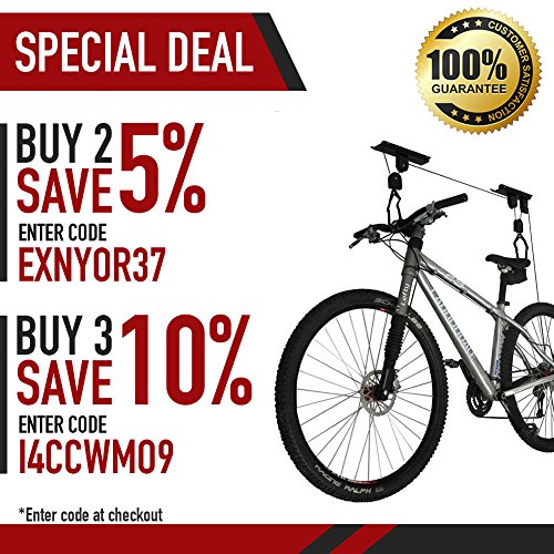 - GRAB IT NOW WITH PROMO DEAL - So what are you waiting for? Buy 2 of our high quality bike rack for 5% off, and buy 3 or more for 10% off. Do not hesitate any longer - click the ADD TO CART button now and get Hanging Bike Rack (TM) while our limited stocks still last!