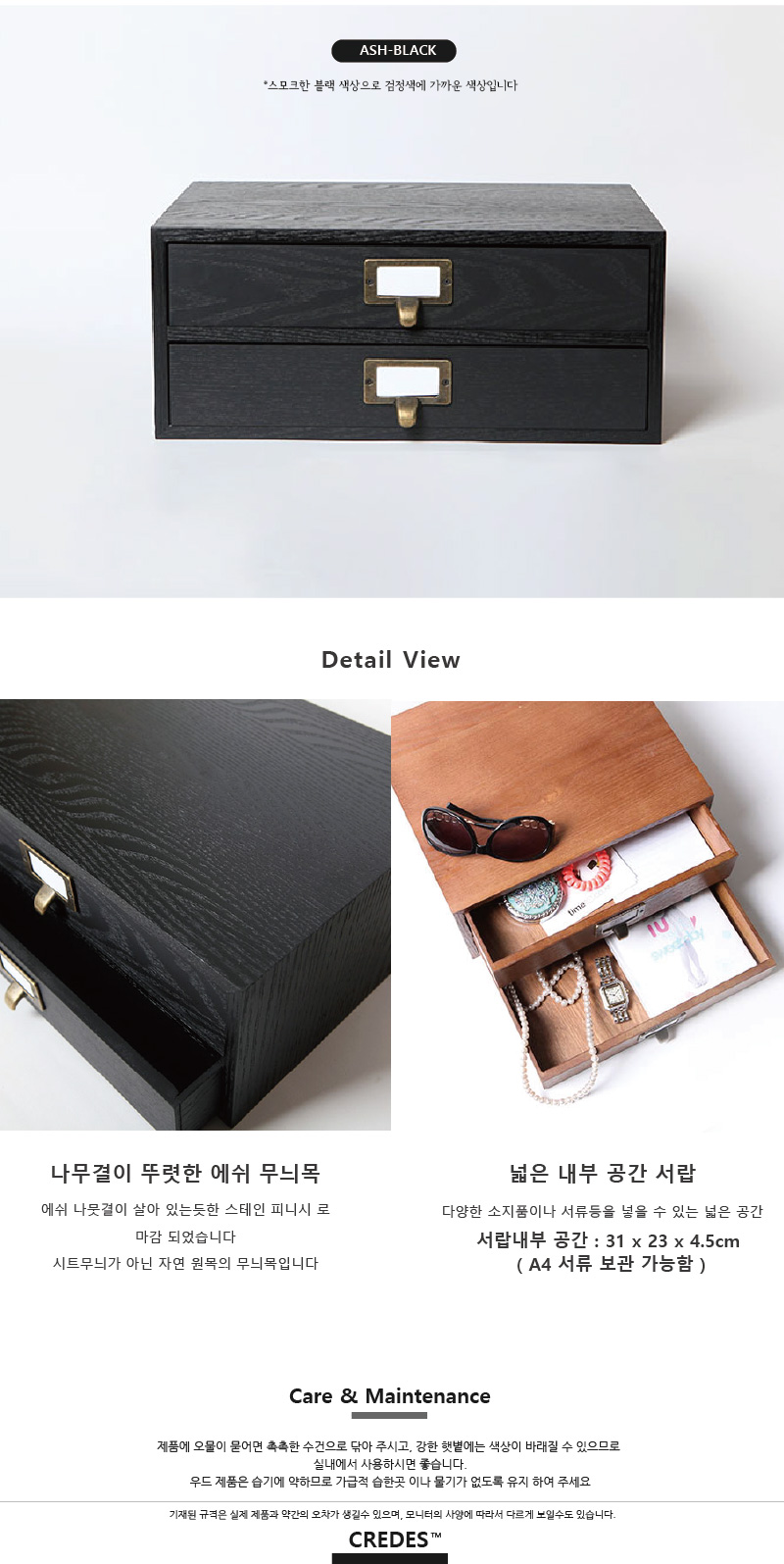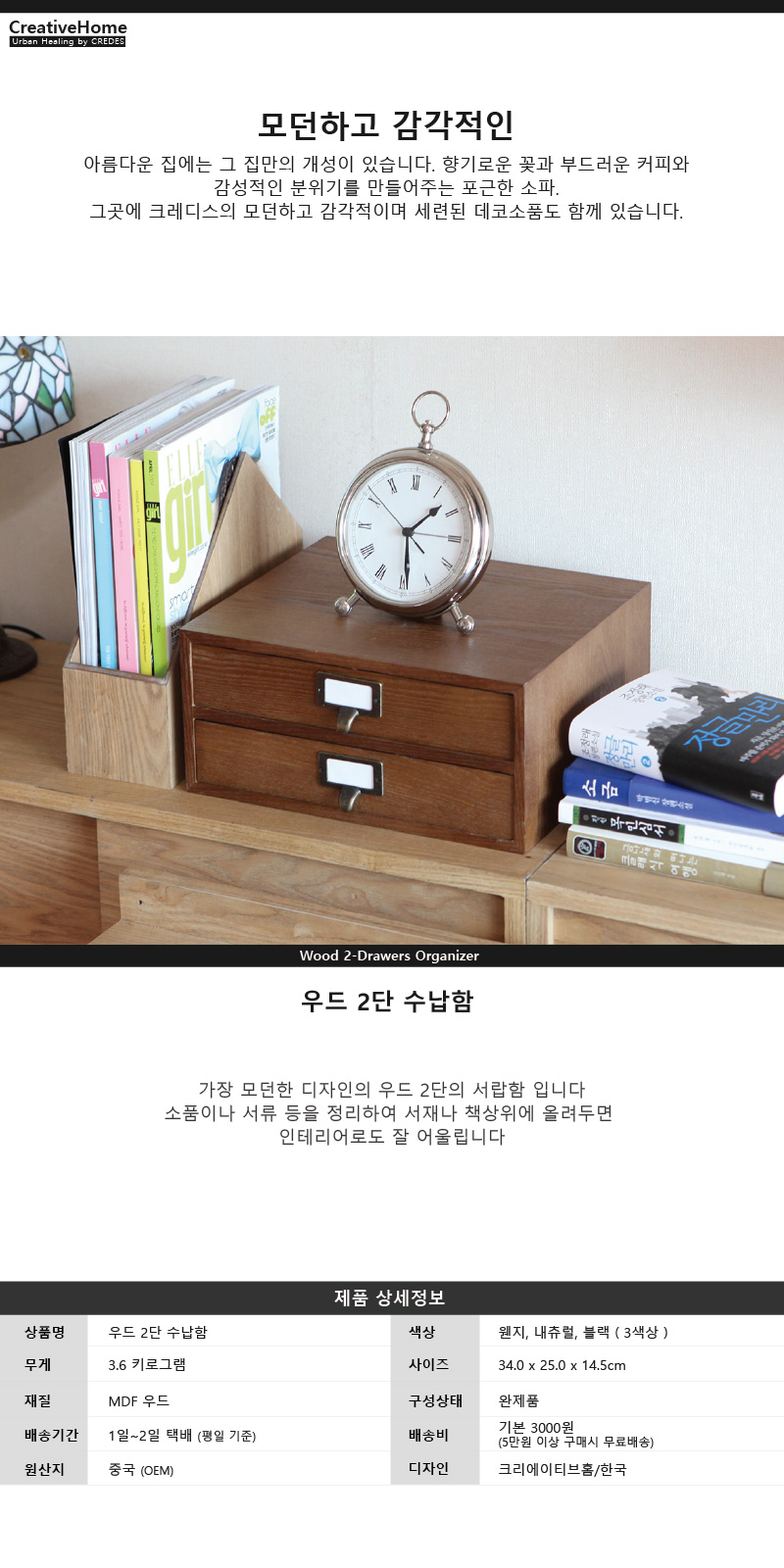 상품명 : 우드 블랙 2단 서랍장