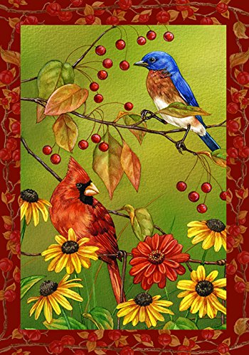 - GARDEN FLAG SIZE: This Toland's 'Birds N Berries Flag' is the small, mini Garden size (12.5 x 18")