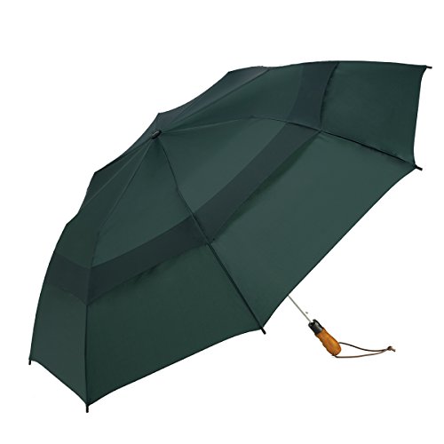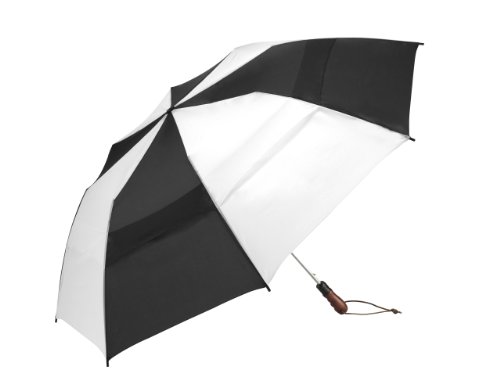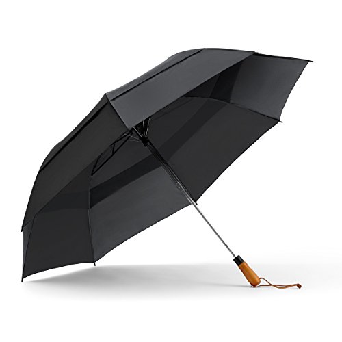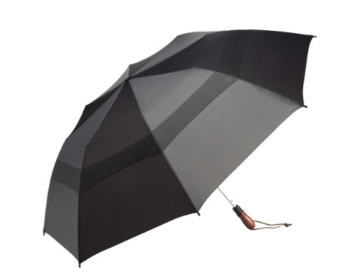 Product Description Vented to resist windy conditions, jumbo yet compact, this auto open umbrella has a substantial 58-Inch canopy arc and folds down to under two-feet for optimal portability and coverage. 0