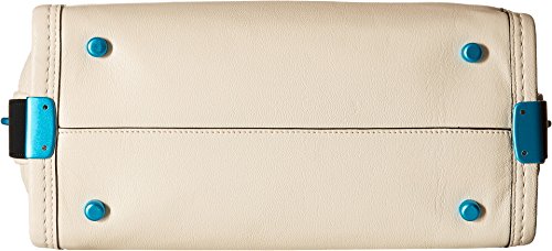 Grain leather. Inside zip, cell phone and multifunction pockets. Zip-top closure, fabric lining. Handles with 4'' drop. Long strap with 19'' drop for shoulder wear. Imported.
