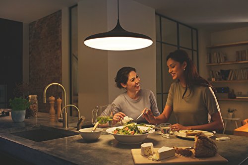 From sunrise to sunset, the Philips hue white ambiance cher dimmable LED smart suspension light changes how you light your moments at home. With wireless control on your smartphone or tablet, choose the perfect light setting for any mood or activity such as reading or relaxing, concentrating, or energizing. Requiring the hue bridge (sold separately) for the full hue experience, this sleek light creates ambiance with warm white to cool white light. Install it anywhere you would a standard overhead light, adjust the height, and pair it with the hue bridge, which allows you to control this and other Philips hue lights via the Philips hue app. Easily expand your lighting system with accessories (sold separately), such as a hue dimmer switch, hue tap, or hue motion sensor. Pair it for automation with your existing Nest or SmartThings system. This box includes one Philips hue white ambiance cher light with manual and two-year warranty.Feature
