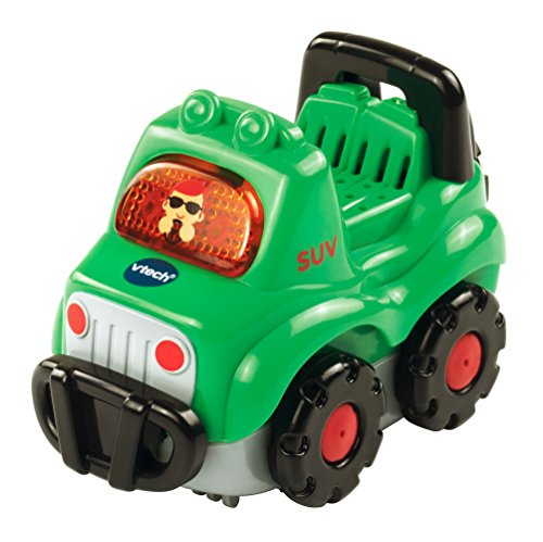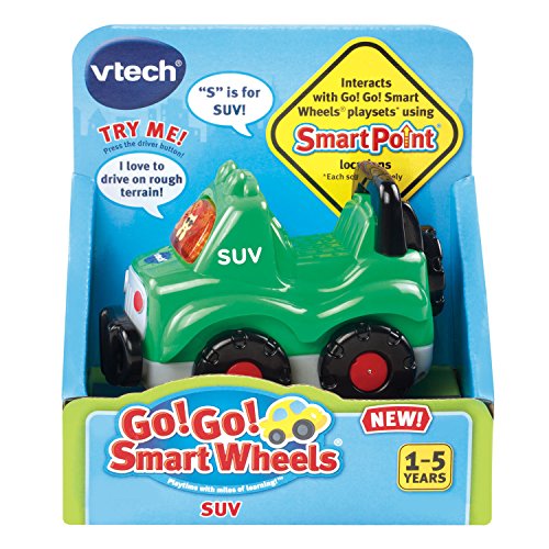 Go off-roading with the rugged Go! Go! Smart Wheels SUV by VTech! Perfectly-sized for little hands, it entertains your child with a light-up driver button that activates playful music and sounds. As your child pretends to go on an adventure, they will learn about the letter S and the vehicles name. The electronic SUV also responds to SmartPoint locations with different phrases and sound effects on all Go! Go! Smart Wheels playsets.
