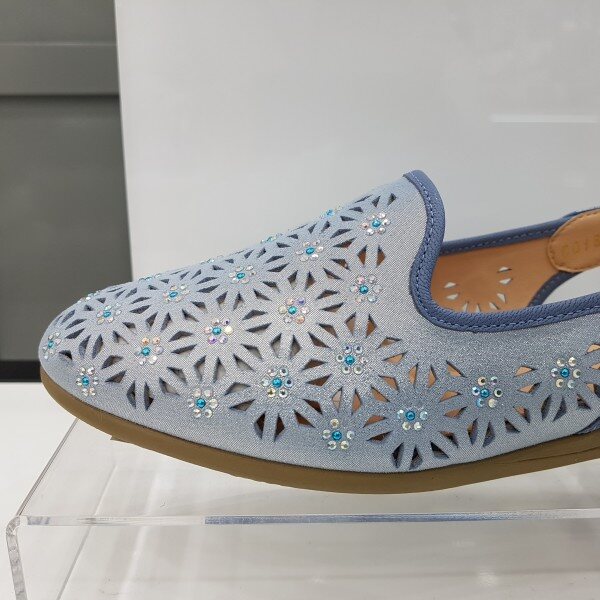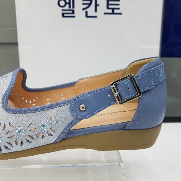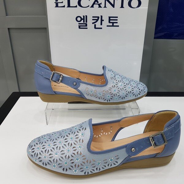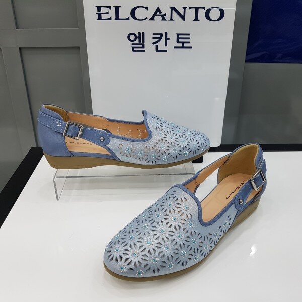 레이저로 꽃모양에 구멍을 내어 시원하며 고급스러움을 더한 플렛 주머니 공법? 까래로 쿠션감이 좋은 구두 입니다