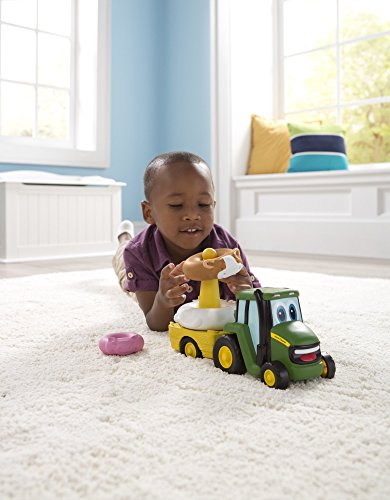 The John Deere Farm Stackers make learning fun for your toddler! When your child stacks the animals correctly he will be rewarded by hearing their sounds! Once all of the animals are stacked up, push Johnny Tractor along and watch the animals spin around on the wagon. The John Deere preschool toys provide classic learning play!Feature