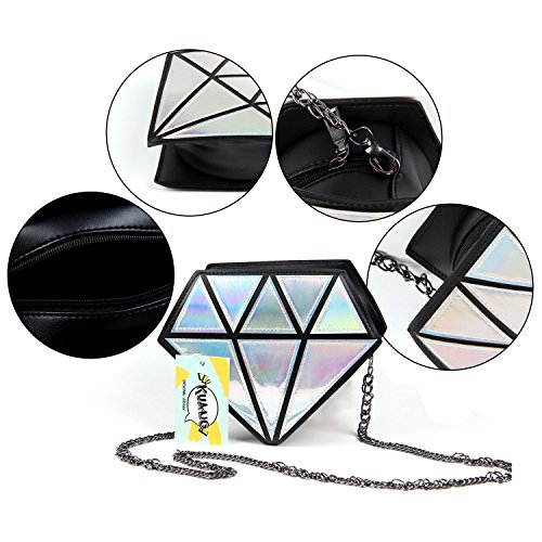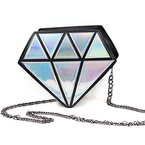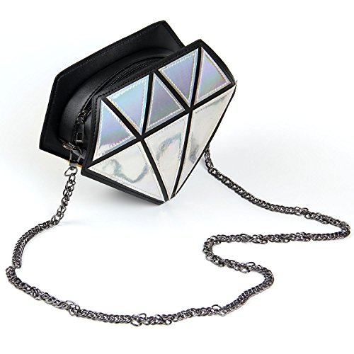 Kuang Laser Diamond Shape Evening Shoulder Bag PU Leather Chain Purse for Women Girls