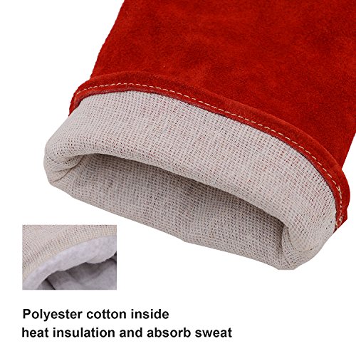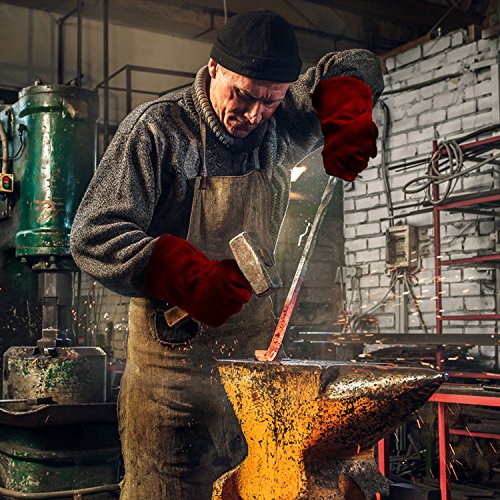 Ibowooforrest Heavy Duty Heat and Fire Resistant Gloves Perfect for Gardening/Oven/Grill/Mig/Fireplace/Stove/Pot Holder/ Tig Welder/Animal Handling/BBQ,14 Inch Long(Red)