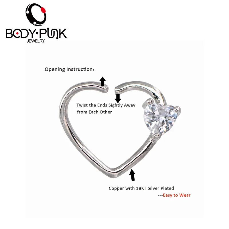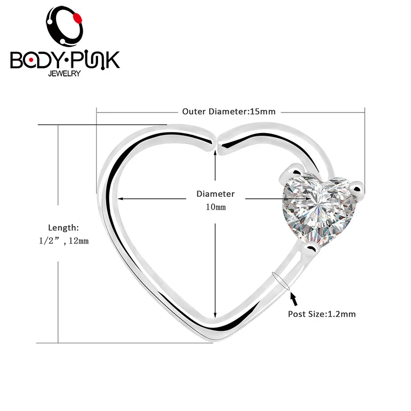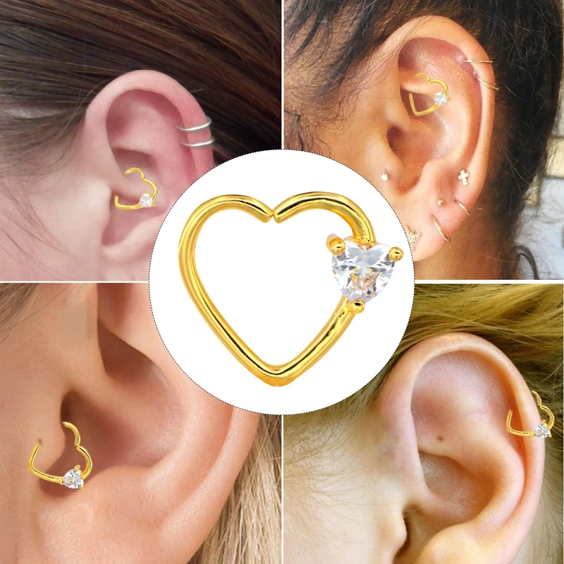 Product Name:Heart CZ Left Closure Daith Cartilage 16 G Heart Tragus Earring