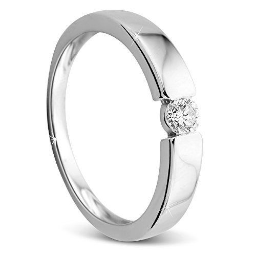 Orovi Damen Verlobungsring Gold Solitarring Diamantring 9 Karat (375) Brillianten 0.15crt Weissgold Ring mit Diamanten