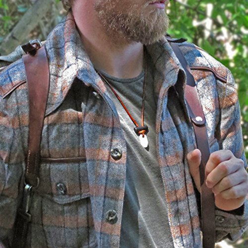 The Bushcraft | Fire Starter Necklace | MADE IN USA | Modern Day Flint & Steel Two-Part Pendant | Rich Cowhide Leather | Tied with Classic Mountaineering Knots