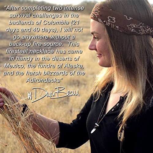 MADE IN AMERICA - Proudly handcraft in the USA! This 2-Part fire starter pendent contrasts a pure white Zirconia (ZrO2) Ceramic "Scraper" punctuated against a black chamfered Ferrocerium barrel toggle