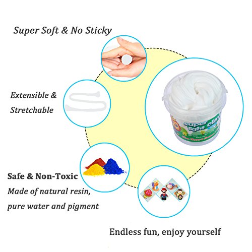 【Super Soft & Non-sticky】The Ultra-light Clay is super soft and the material is Non-sticky. No matter how you pinch it, elongate it, squeeze it or twist it, the slime will not stick to your hands.