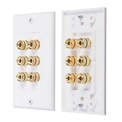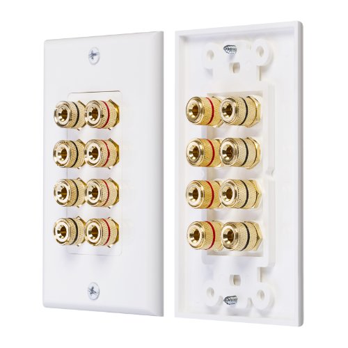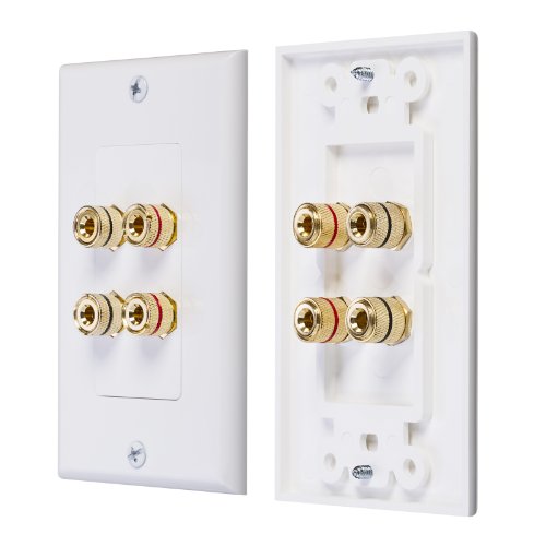 Fosmon home theater wall plates are designed to be used with banana plugs, spades or just bare wire on both the front and rear of the plate.