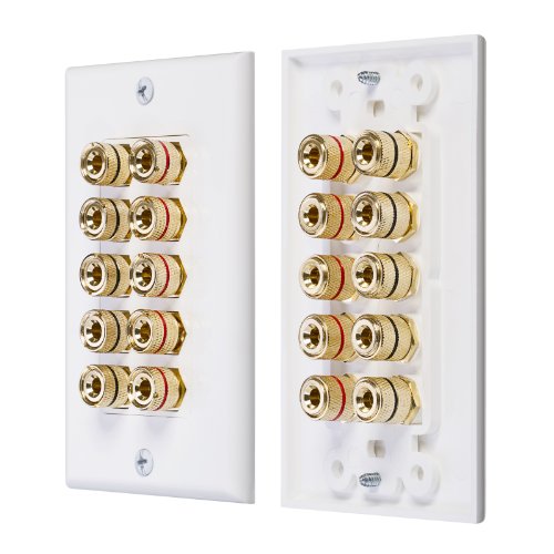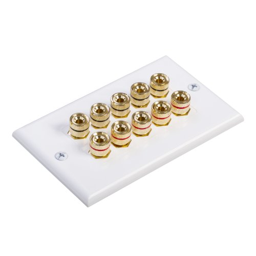 Fosmon Coupler Type Gold Plated Copper Banana Binding Post Wall Plate for 5 Speakers - White Gold Plated Copper Connectors