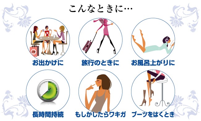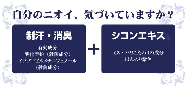 ご使用前にお肌を清潔にし、乾燥させてから、わきの下、足など汗の出やすいところに、適量すり込むように塗布してください。 |