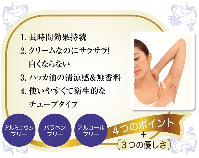 数多くのエステ商品のノウハウを生かして生まれた信頼のデオドラントクリーム。