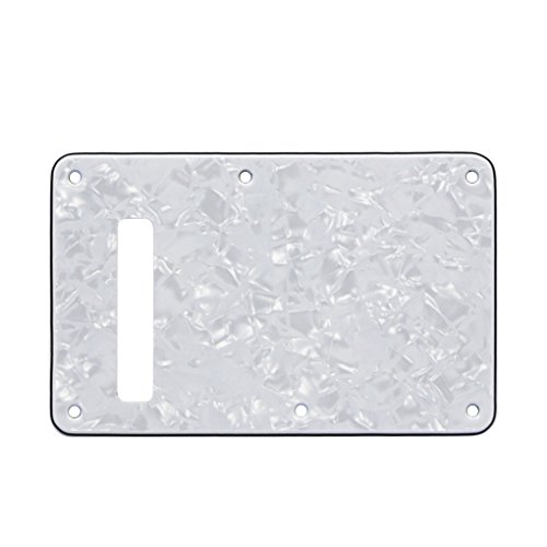 Product Description Feature: * Guitar tremolo back plate or tremolo cavity cover for US Modern Fender Strat Stratocaster style guitar or similar guitar part replacement.* Protecting your guitar and also a pretty decoration.* All materials are environmentally friendly, thermostability, no smell. Multi-layer plates are pressed under high temperature and pressures, to make them close integration between each layer, will not appear curly, deformation, or separation of different layers.* Excellent product process ensure the edge of the smooth and structured.There is protective films on the front of pickguards, anti-scratch to protect the guitar.Specification:* 6 screws holes in the side of back plate.* Material: 4Ply of Pearl Plate and PVC* Color: White Pearl Color* Note:Item's color might be different from the picture because of the aberration.Package Includes:1 x guitar back plate 0