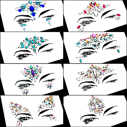 TOODOO 8 Sets Face Gems Rhinestone Colorful Sticker Tattoo Jewelry Stick on Face Festival Jewels for Forehead Body Decorations