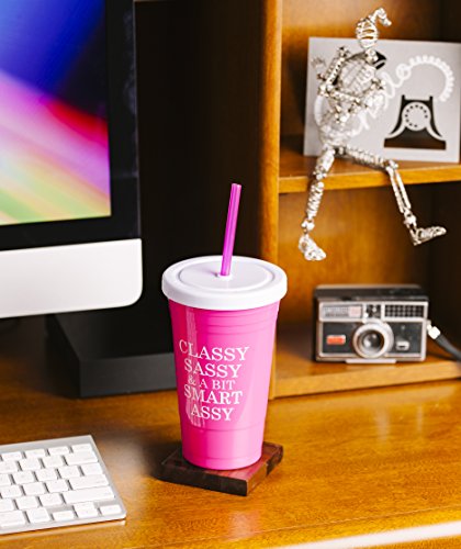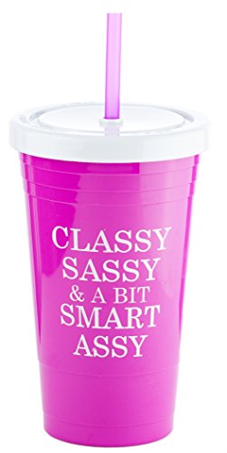 Funny Guy Mugs Classy Sassy And A Bit Smart Assy BPA Free Acrylic Tumbler with Screw Top Lid and Reusable Straw, Pink, 20-Ounce