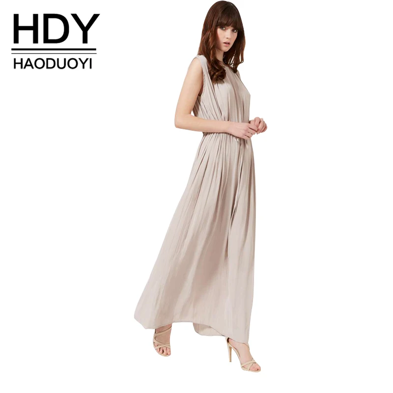 HDY Haoduoyi Fashion Drawstring Maxi Dress Women Sleeveless Cold Shoulder Female Loose Dress Elegant High Waist Casual Dress | |||||||||||||||||||||||||||||||||||||||