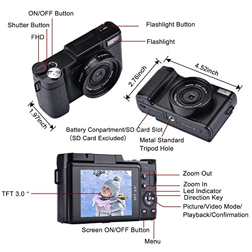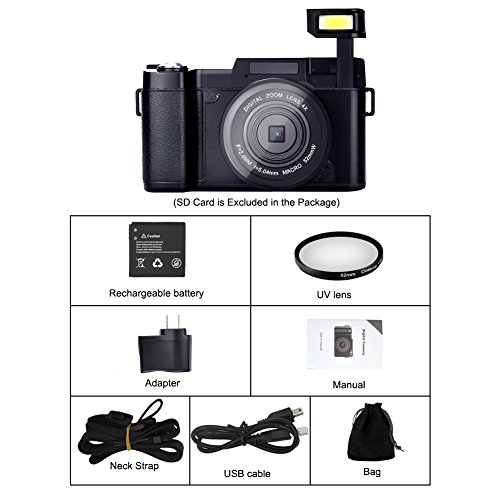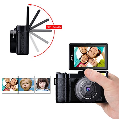 180 DEGREE ROTATABLE SCREEN: This digital camera has 3 inch screen, which can rotate 180 degree for selfie or vlogging. It will meet diversified requirements of photography with 52mm different lenses (Need to purchase separately). Overall, this is a good choice for you to share your happiness on your social media, such as Facebook, YouTube, and twitter and so on.