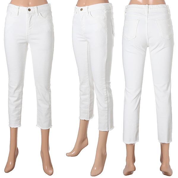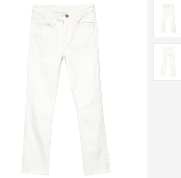 깔끔하게 떨어지는 핏 감을 자랑하는 아이보리 색상의 팬츠입니다. 밑단 컷팅 처리로 빈티지하면서도 트렌디한 감각의 아이템입니다.