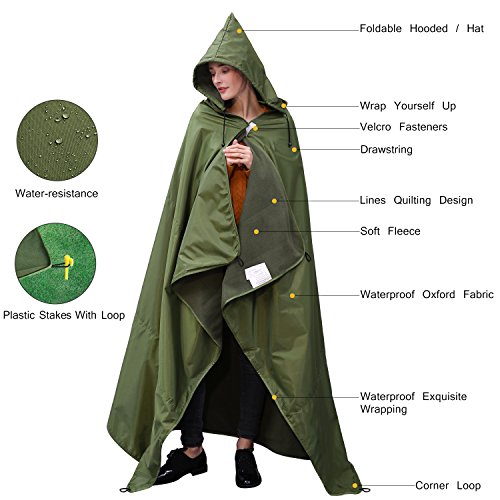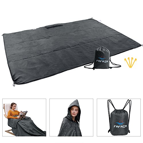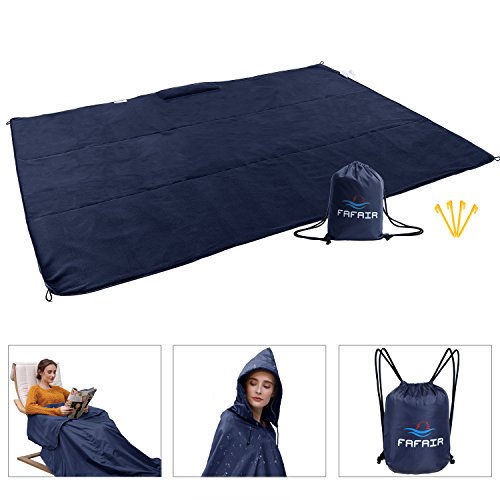 Studio : FAFAIR Publisher : FAFAIR Product Description The FAFAIR Hooded Stadium Blanket is a warm wearable blanket with a shoulder/hood addition along one side. Comfortably located cozy pockets allow you to wrap yourself from head to toe. 100% Warm Waterproof/Windproof Hooded Picnic Blanket let you easy to converts to a rain poncho - no need for an umbrella!