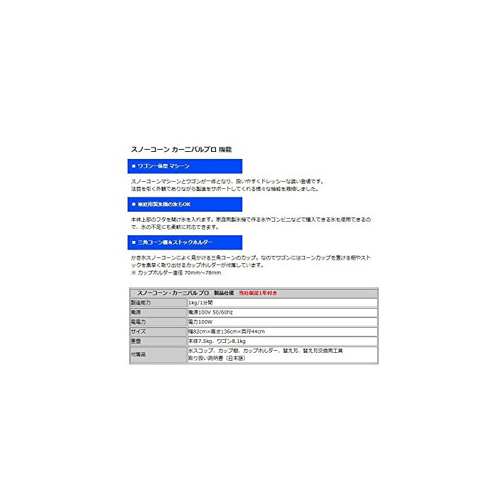 원본상품명: シャリシャリかき氷マシン イベント用かき氷機【スノコンカニバルPRO】
