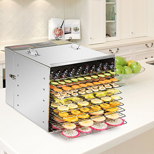 【DEHYDRATE TONS OF FOOD AT ONCE】, with its 1000w power, 95-155°F adjustable horizontal air flow, 16 square feet of drying space with 10 stainless steel trays (14" x 16"), our food dehydrator make you easily dehydrate large quantities of food in just a couple of hours