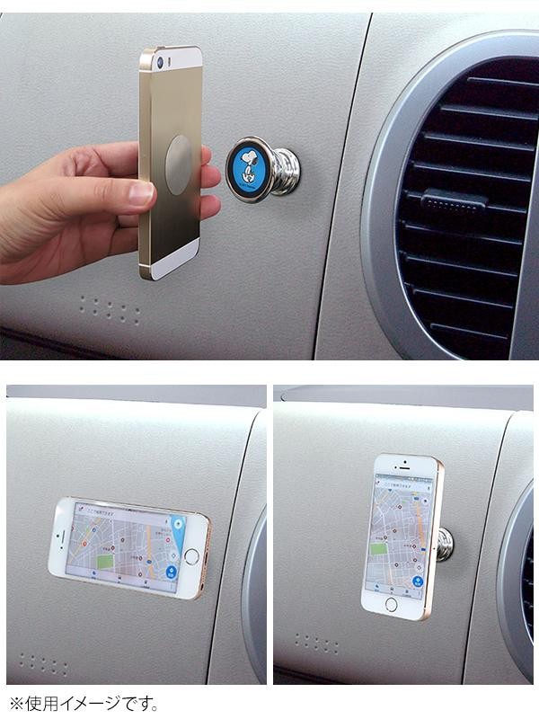 | 強力マグネットでしっかり固定!!着脱も簡単にできて便利。スマホが横でも縦でも使用OK。角度調節もできるので、ナビも使いやすい♪ |