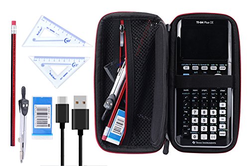 Hard EVA Travel Carry Pouch Sleeve Portable Protective Box Cover Bag Case For Texas Instruments TI-84 Plus CE Graphics Calculator, 83, 85, 89, 82, Plus / C (Black+Red)
