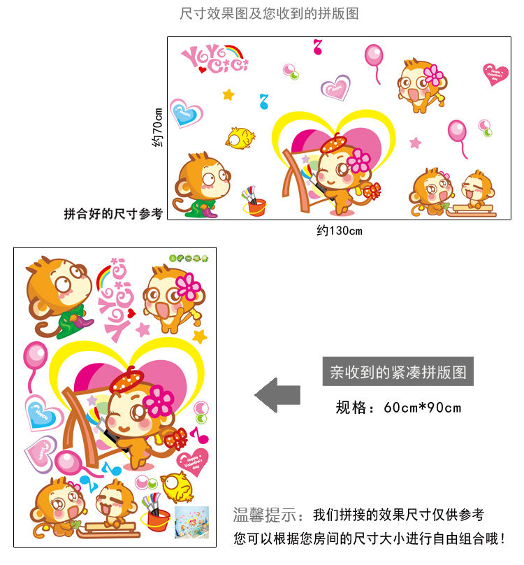 可移除墙贴纸墙纸贴画悠嘻猴 儿童房幼儿园装饰卡通温馨卧室