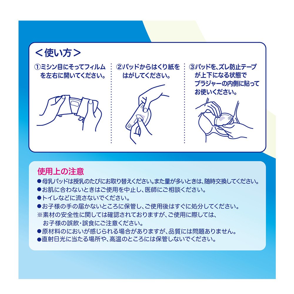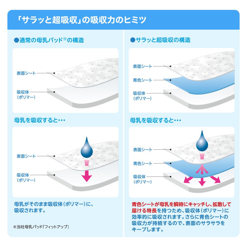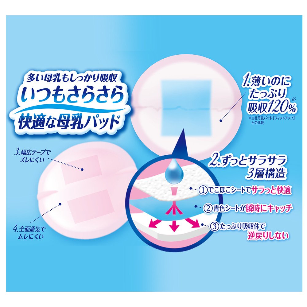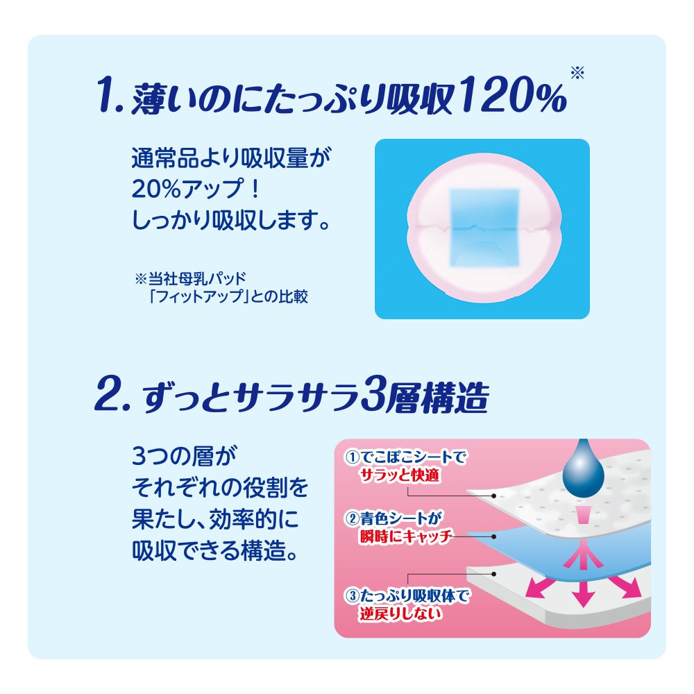 ● The amount absorbed is 20% higher than regular products (Pigeon breast pad "Fit up").
