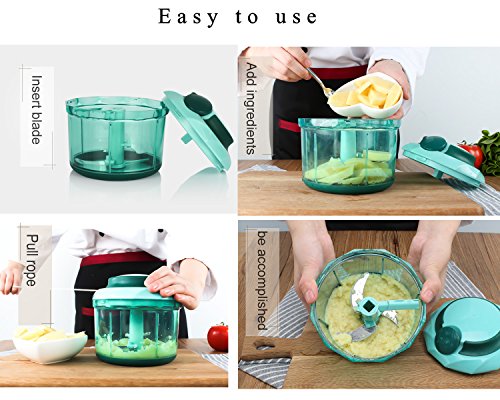 Manual Food Chopper, Upintek Kitchen 4 Cup Manual Hand Held Chopper Blender Pull String Chopper for Vegetable Chopper Fruit Mincer Salad Mixer(Green)