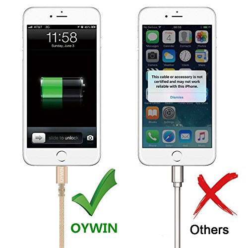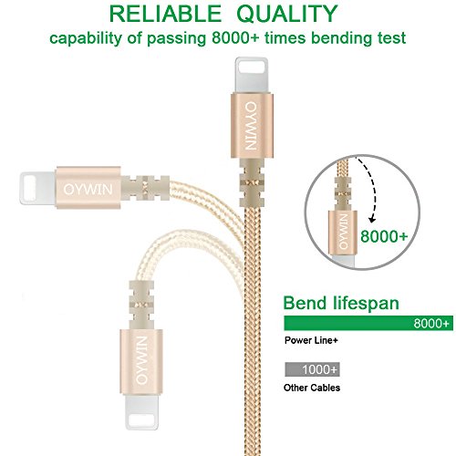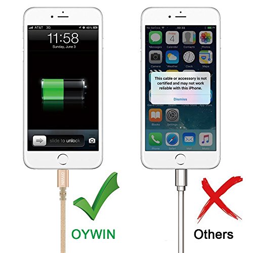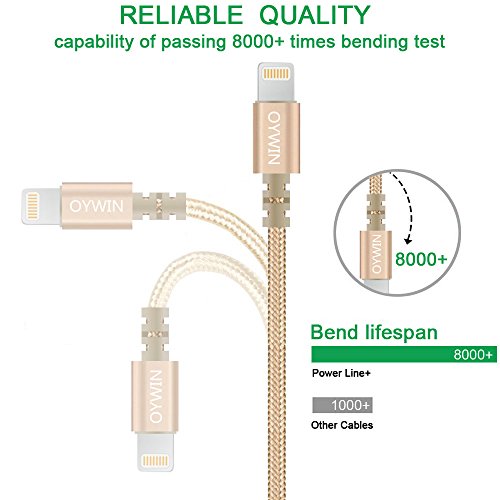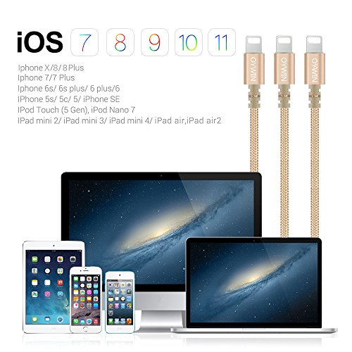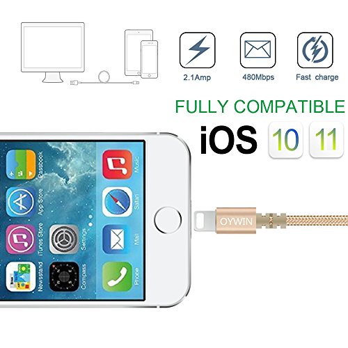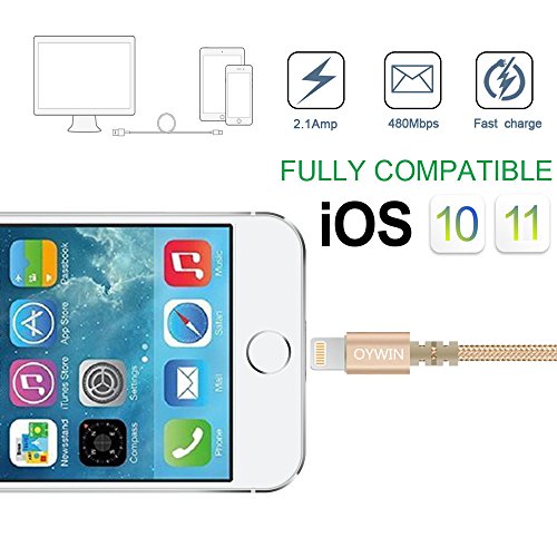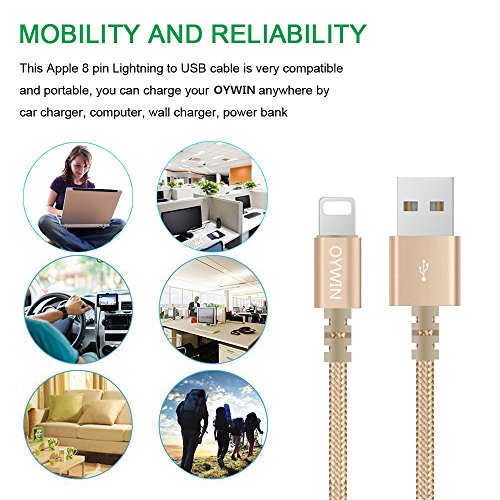Studio : OYWIN Publisher : OYWIN Binding : Electronics Product Description Incredibly Durable The cable covered by high quality nylon braided material which is more durable than other plastic cable, prevent to bending or scratching. Constructed from heat-resistant connectors ensure complete safety and reliability. Lightweight and flexible to be coiled for portable carrying but tangle-free indeed. Perfect Length The 6 feet length of these charging cables allows you to move around freely as you charging your devices. Whether you are at home, at the office or back seat of car, you can enjoy complete freedom of movement. Never worry about sudden power off or short length. Package comes with three USB cables as a great backup, you can bring them where you need. Sync Charge Great performance with pure wire and standard 8 pin connector provides charging or syncing with your devices. Compatibility - Complete charge and sync compatibility with iPhone 7, iPhone 7 plus, iPhone 5, iPhone 5s, iPhone 5c, iPhone 6, iPhone 6 plus, iPhone 6s, iPhone 6s plus, iPhone SE. - iPad Pro, iPad Air, iPad Air 2, iPad mini, iPad mini 2, iPad mini 3, iPad mini 4, iPad 4. - iPod Touch (5 Gen), iPod Nano 7. - Compatible with the latest iOS10 without any error messages. What's in the box 3 X 6 Feet Nylon Braided Lightning USB Cables