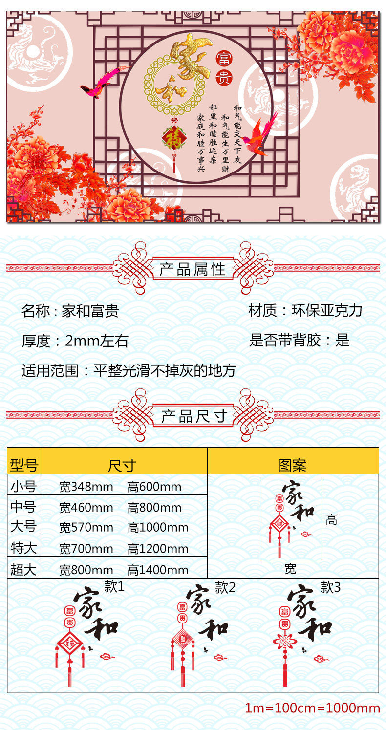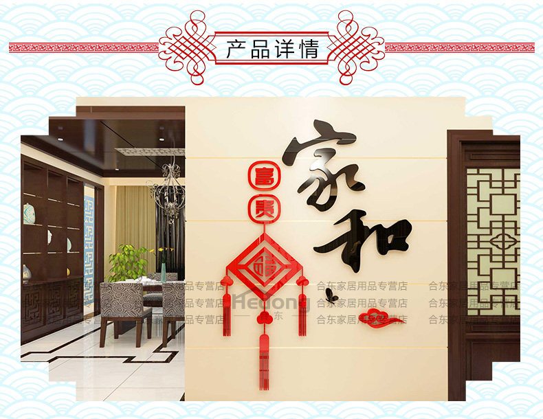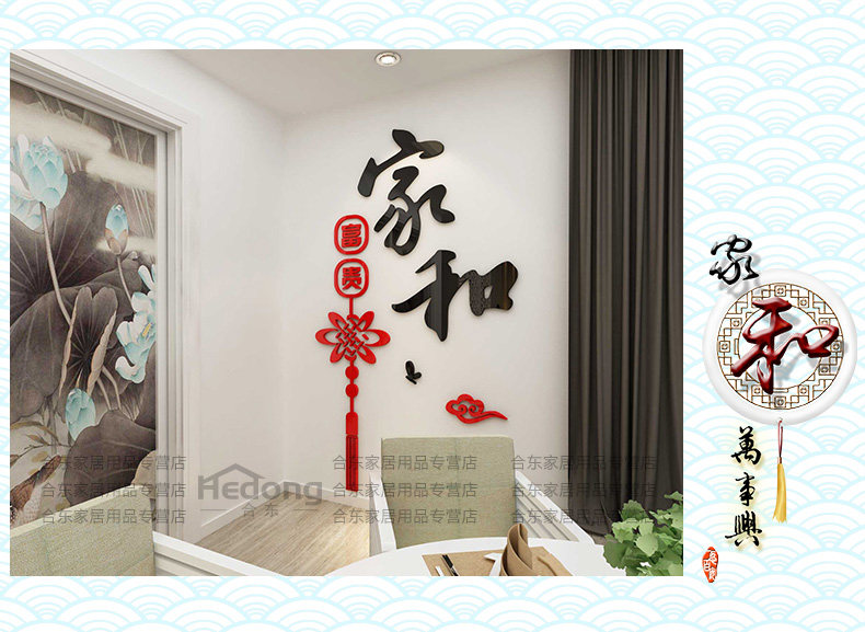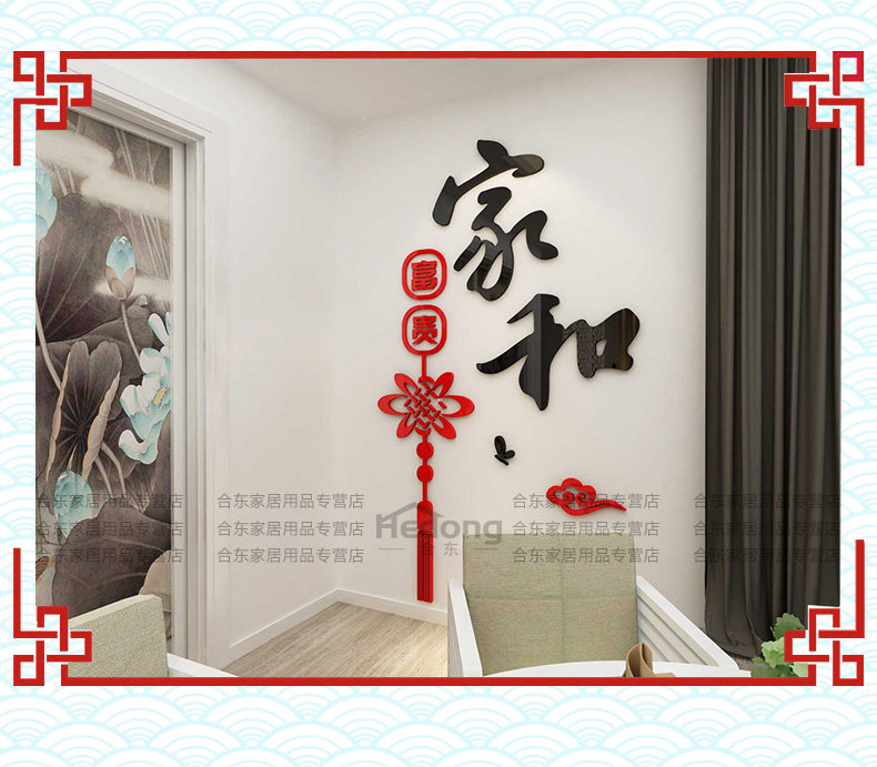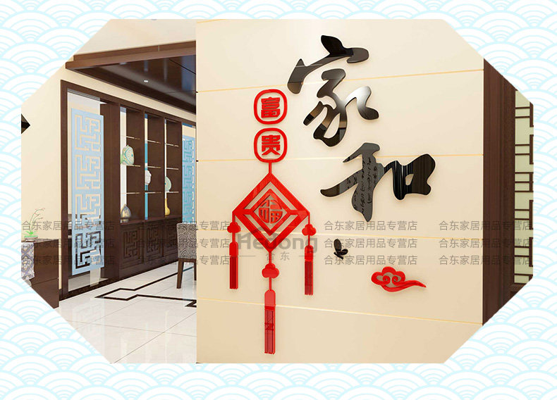 家和中国结墙贴纸客厅亚克力墙贴玄关墙壁贴画3d立体餐厅墙面装饰