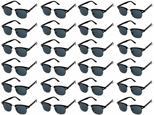 CLASSIC RETRO SUNGLASSES. Black Horn Rimmed Half Frame Vintage Round Sunglasses for Women & Men. Cheap Sunglasses for Bachelorette Party or Bachelor Party Favors (Black Lens - 24 Pack)