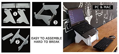 -. Feature : ✔ IMPROVE YOUR POSTURE: Sitting straight will leave you less tired, improve your concentration and posture. / ✔ VERY LIGHT & PORTABLE: Weights only 230g including the case(included), and it takes only few seconds to assemble and dissemble. / ✔ DURABLE: Using high quality material this laptop stand is very durable and hard to break, so u don't need to be careful when you carry it around. / ✔ KEEP LAPTOP COOL:This laptop stand will provide your laptop with plenty of fresh air, and keep it cool.ESIGN WITH CLEAR LINES / ✔ FIT FOR MAC & PC: Will fit on all Mac books(Apple Mac book, Mac Air ) and PC laptops (not ticker than 23mm or 0.9").