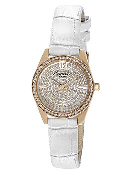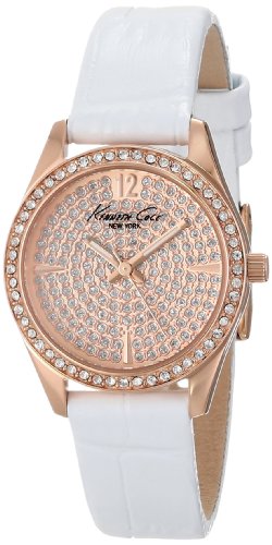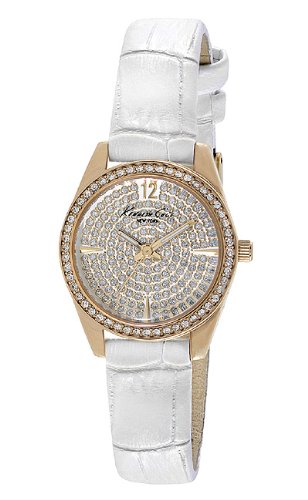ReleaseDate : 2014-01-25 Studio : Kenneth Cole New York Publisher : Kenneth Cole New York Binding : Watch Product Description Dress watch, Japanese quartz movement, Polished rose-gold-tone hands with luminous accents, Polished rose-gold-tone sweep seconds, Applied polished rose-gold-tone Arabic twelve, Applied polished rose-gold-tone triangular hour markers at three, six and nine o'clock positions, Rose-gold-tone pave crystal dial, Slim white croc-embossed genuine leather strap with polished rose-gold-tone stainless steel buckle, Polished rose-gold-tone stainless steel bezel encrusted with crystals, Polished rose-gold-tone stainless steel round case, Textured rose-gold-tone steel crown, Stainless steel caseback, Mineral crystal with black logo, 3 ATM (30 meters/100 feet water resistant) 0