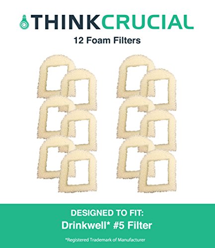 12 Drinkwell Compatible Replacement Foam Pre Filters, Fits 360, Lotus, Avalon, Pagoda & Sedona Pet Fountains, by Think Crucial