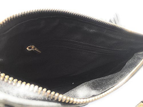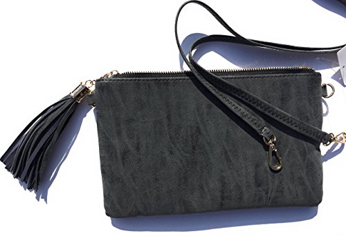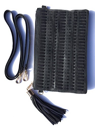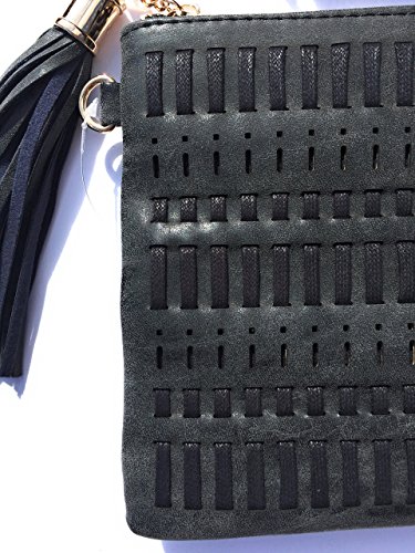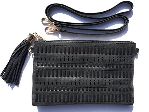 -. Brand : New Prospects -. Color : Charcoal -. Department : womens -. EAN : 0708131700430 -. Feature : Day or Night, Laced & Laser cut perforated design / Large Tassel on Zipper Closure design 10.5 in (L) X .5 in (W) X 6.5 in (H) / Charcoal Faux-suede with cloth lining & removable shoulder strap / Interior sippered pocket for your smalls / Very Versitile add or remove the faux-leather shoulder strap for a 20 inch drop -. ProductGroup : Shoes -. ProductTypeName : HANDBAG -. Size : Medium -. Title : Womens Clutch Purse Laced and Perforated Lazor Cut Out Handbag Gold Accent Pouch Large Tassel Zipper Fashion -. UPC : 708131700430
