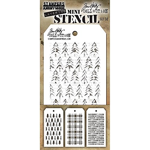 Tim Holtz Mini Layering Stencil Set #32 includes 3 Tag-shaped mini stencils measuring 3 1/8" x 6 1/4"