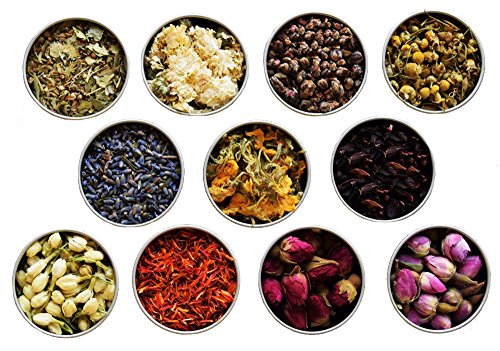 -. Title : Tea Sampler - Flower Tea - Organic Tea - Herbal - Red Rose - Jasmine - Chrysanthm - Chamomile - Hibiscus - Saffron - Evening Primrose - Lavender - Linden Flower - Tea - Loose Leaf Tea