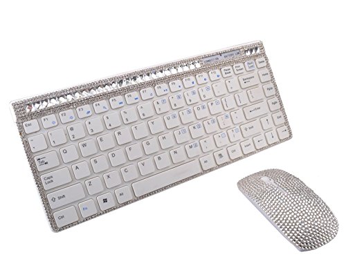 -. Title : Slim Silver Crystal Rhinestone 10M Remote 2.4G Wireless Keyboard Mouse Mice Sets