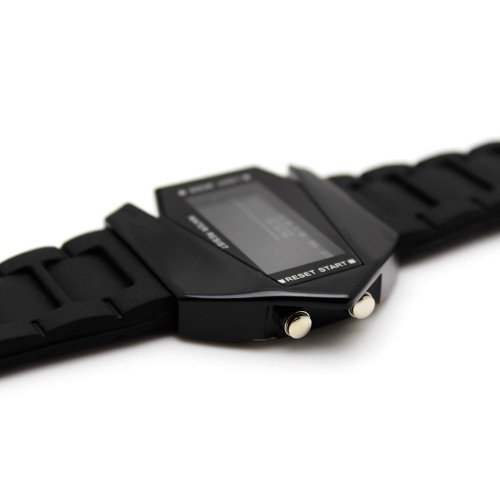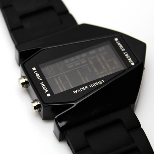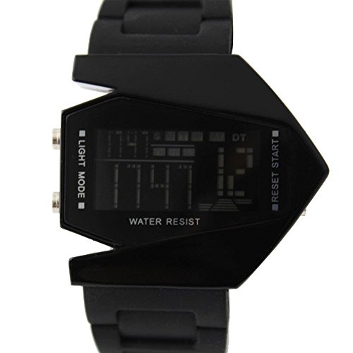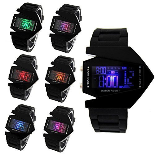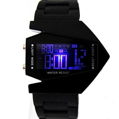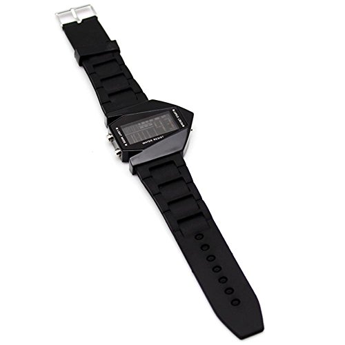 HIWATCH ELEGANT PLANE STYLE DIGITAL DISPLAY LCD 7 COLORS SILICONE WRIST WATCH BLACK WITH GIFT BOX