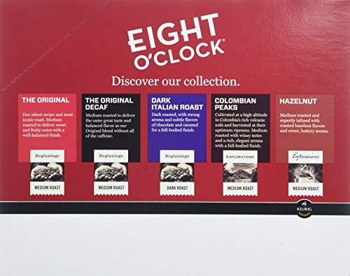 America's original gourmet coffee, and the country's #1 whole bean coffee, has been delighting coffee lovers for over 150 years. Now that same smooth, rich, delicious coffee is as close as your Keurig® brewer. With one touch of a button, you can enjoy the 100% premium Arabica beans that have been carefully selected and expertly roasted just for you. With single cup convenience, anytime is the right time for Eight O'Clock Coffee.Feature