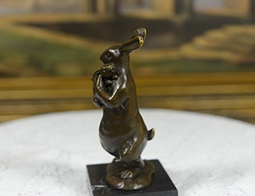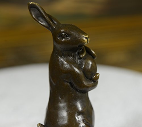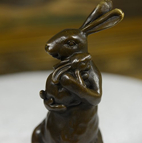 -. Title : Cute little Bronze Sculpture Rabbit Mother w/ baby bunny warm hug,Signed: Milo