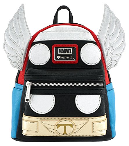 Studio : Loungefly Publisher : Loungefly Binding : Toy Product Description This officially licensed Marvel mini backpack features a 3D Thor Ragnarok costume design. It has a small front zip pocket, 2 side pockets and a large zipper compartment. It measures W: 9" X H: 10.5" X 4.5 and is made of a vegan friendly faux leather. 0